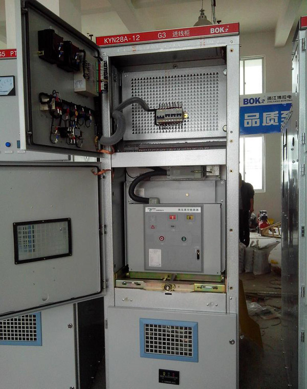 KYN28(GZS)型戶內(nèi)金屬鎧裝抽出式開關(guān)設(shè)備(以下簡(jiǎn)稱開關(guān)設(shè)備)。該開關(guān)設(shè)備系3-10KV三相交流50Hz單母線分段系統(tǒng)的成套配電裝置。主要用于發(fā)電廠、中小型發(fā)電機(jī)送電、工礦企事業(yè)配電以及電業(yè)系統(tǒng)的二次變電所的受電、送電及大型高壓電動(dòng)機(jī)起動(dòng)等,實(shí)行控制保護(hù)、監(jiān)測(cè)之用。具有防止帶負(fù)荷推拉斷路器手車、防止誤分合斷路器、防止接地開關(guān)處在閉合位置時(shí)關(guān)合斷路器、防止誤入帶電隔室、防止在帶電時(shí)誤合接地開關(guān)的聯(lián)鎖功能,既可配用VS1真空斷路器,也可配用ABB公司的VD4真空斷路器,是一種性能優(yōu)越的配電裝置。